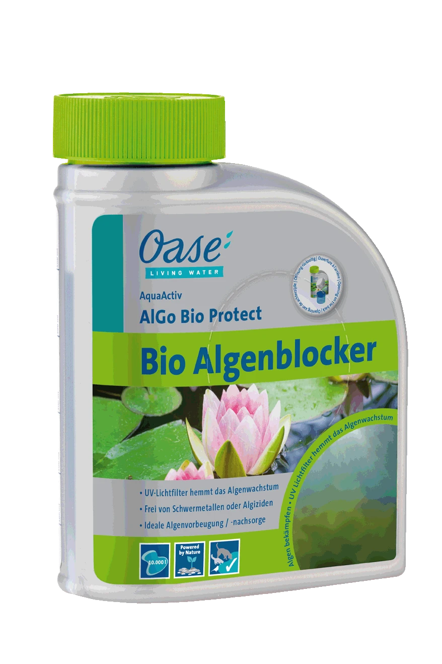 Der biologische Algenschutz Oase AlGo Bio Protect hemmt effektiv das Algenwachstum in Ihrem Teich. Durch die Zugabe des Flüssigextrakts erhält Ihr Teichwasser eine kaum sichtbare bernsteinfarbene Färbung. Diese bewirkt, dass weniger UV-Licht in das Teichwasser eindringen kann (der sogenannte Sonnenbrilleneffekt). Dadurch wird die Photosynthese der Algen deutlich reduziert, sie sterben auf Grund von Unterversorgung ab. Optimal ist der Einsatz nach einer abgeschlossenen Algenbehandlung z.B. mit Oase AlGo Universal, oder vorbeugend im Frühling. Zur optimalen Ergänzung empfehlen wir Ihnen die zusätzliche Anwendung des Teichpflegemittels Oase OptiPond und des Algenschutzes Oase PhosLess.