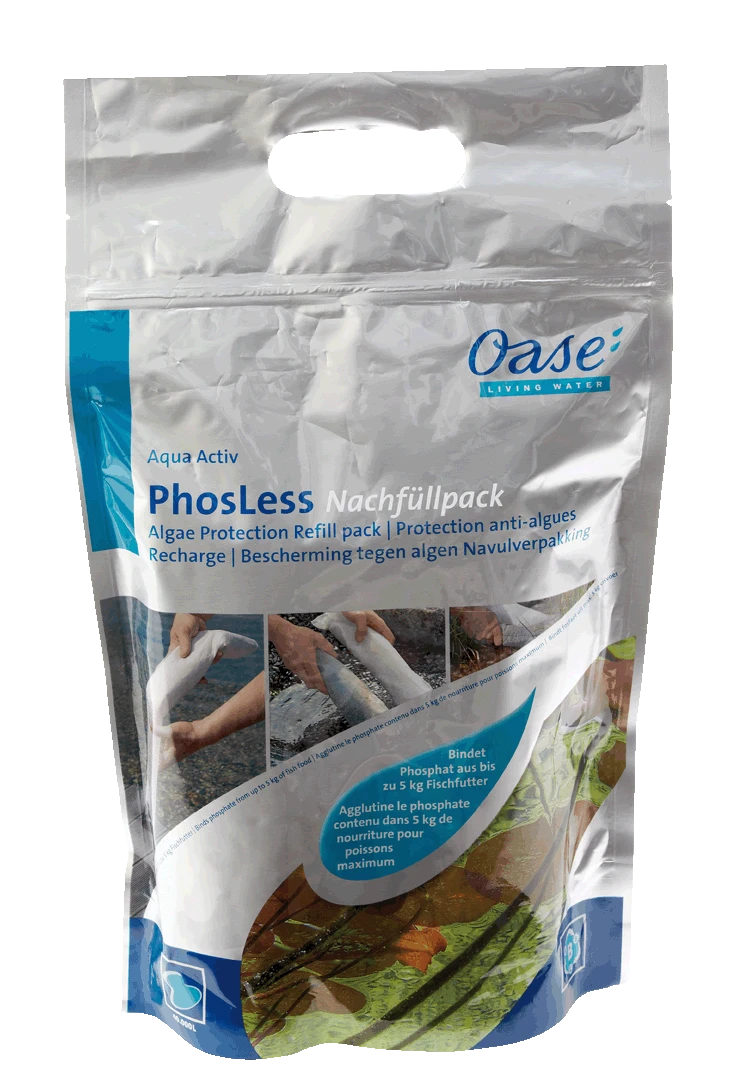 Der Algenschutz Nachfüllpack Oase PhosLess ist als Ersatzmedium für die Oase PhosLess Filtersäulen gedacht. Er kann aber auch direkt in bewegtem Wasser, besonders in größeren Gewässern, eingesetzt werden. Ideal ist auch der Einsatz im Oase ProfiClear Premium.