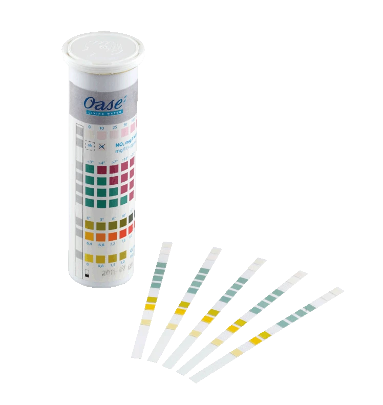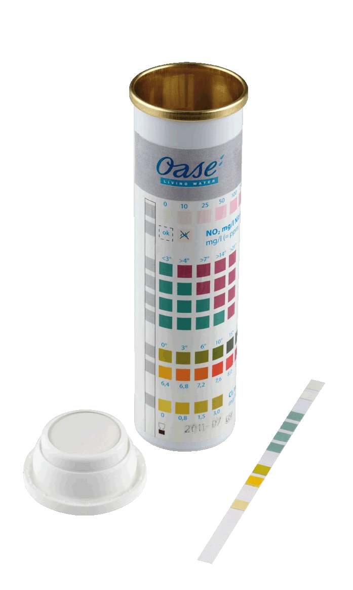 Mit den Wasseranalyse-Teststreifen Oase QuickStick 6 in 1 stellen Sie in weniger als einer Minute die 6 wichtigsten Wasserwerte in Ihrem Gartenteich fest. Bestimmen Sie einfach und sicher pH-Wert, GesamthÀrte (GH), KarbonhÀrte (KH), Nitritgehalt, Nitratgehalt und Chlorgehalt.