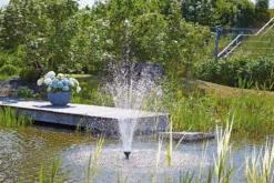 Die Aufstellung und Inbetriebnahme dieses Wasserspiel-Sets ist denkbar einfach. Die StandfĂŒĂe der Pumpe ermöglichen einen sicheren Stand auf Ihrem Teichboden. Das Ausrichten des FontĂ€nenaufsatzes an die örtlichen Gegebenheiten ist dank TeleskoprohrverlĂ€ngerung mit integriertem Schwenkkopf ebenfalls mĂŒhlelos zu realisieren. Das praktische, 10 m lange Stromkabel ermöglicht eine flexible Standortwahl.