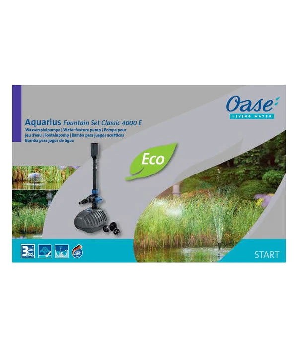 Das Aquarius Fountain Set Classic 4000 E überzeugt selbstverständlich durch die gewohnte Oase-Markenqualität. Stabile Standfüße gewährleisten einen sicheren Stand auf dem Teichboden, während der integrierte Thermoschutz die Pumpe frostfest macht. Übrigens speist das Oase Aquarius Fountain Set Classic 4000 E mit dem separat regulierbaren zweiten Ausgang wahlweise auch kleine Bachläufe und Wasserspeier. Abgerundet wird dieses gelungene Teichzubehör von der hohen Energieeffizienz, dank der die Pumpe ausgesprochen sparsam läuft. Bestellen Sie jetzt das Aquarius Fountain Set Classic 4000 E von Oase und Ihr Teich erhält das gewisse Etwas!