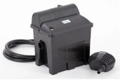 Die im Lieferumfang enthaltene Oase Filterpumpe 2500 fördert mit einer Leistungsaufnahme von nur 40 W zuverlÀssig eine Wassermenge von 2500 l/h zum Teichfilter. Sie erzielt dabei eine WassersÀule von max. 2,20 m.