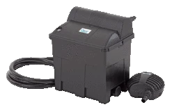 Die im Lieferumfang enthaltene Oase Filterpumpe 2500 fördert mit einer Leistungsaufnahme von nur 40 W zuverlÀssig eine Wassermenge von 2500 l/h zum Teichfilter. Sie erzielt dabei eine WassersÀule von max. 2,20 m.