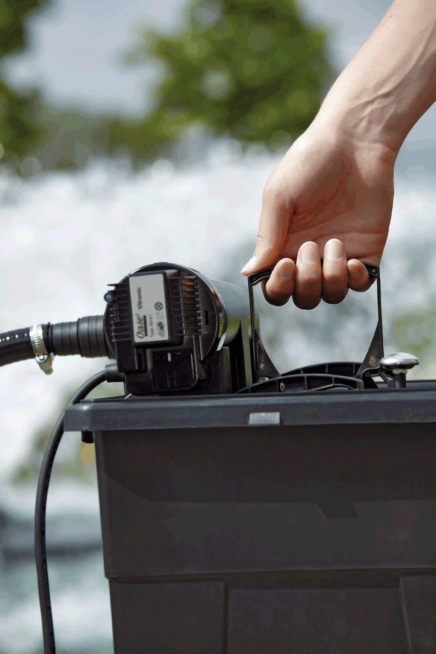 Praktische Reinigungshandgriffe und ein Bodenablauf ermöglichen die einfache Wartung und Reinigung des Oase Biosmart 7000.