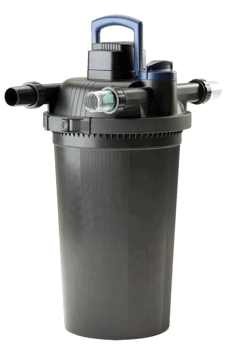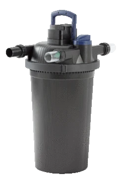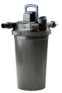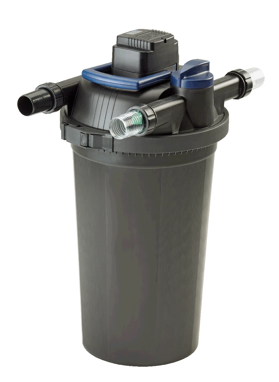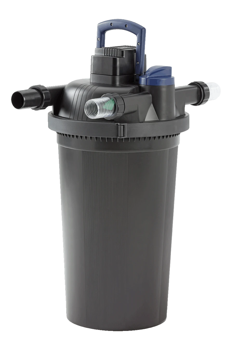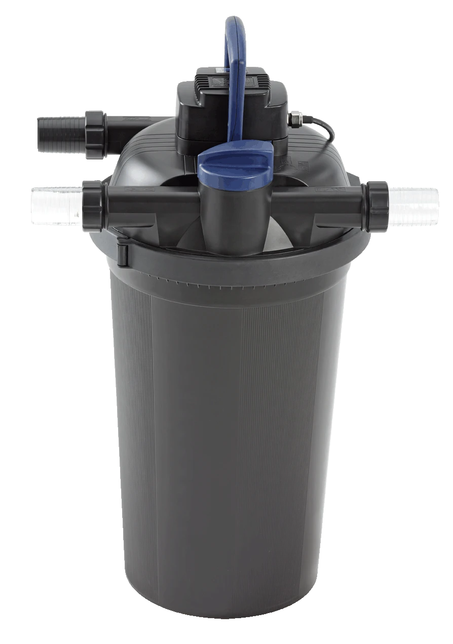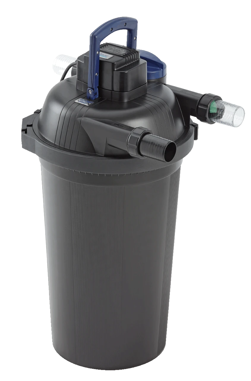 Der besonders hochwertige Druckfilter Oase Filtoclear 20000 aus schlagfestem Kunststoff kombiniert Ă€uĂerst effektiv mechanisch-biologische Reinigung mit hochwirksamer UVC-Technik. Schwebealgen, Bakterien und Keime werden von den UVC-Lichtwellen rasch abgetötet. In den FilterschwĂ€mmen wird mit Hilfe von nĂŒtzlichen Filterbakterien das Teichwasser gereinigt. Das Resultat dieses Zusammenspiels ist klares und gesundes Wasser fĂŒr Teiche mit einem Volumen bis zu 20,0 mÂł, darauf gewĂ€hrt Ihnen Oase die sog. Klarwassergarantie. Neben den hervorragend Filtereigenschaften zeichnet sich der Druckfilter Oase Filtoclear 20000 durch einen hohen Handhabungskomfort aus. Alle Bedienelemente einschlieĂlich des UVC-VorklĂ€rgerĂ€tes sind im Deckel integriert. Die patentierte Easy-Clean-Technologie ermöglicht eine leichte Reinigung ohne Ăffnen des Filters. Die UVC-KlarspĂŒlfunktion erleichtert die Reinigung der UVC-Einheit. Verschmutzungsgrad des Filters, Durchflussmenge und UVC-VorklĂ€rgerĂ€t können komfortabel ĂŒberwacht werden. Der Arbeitsdruck des Teichfilters Oase FiltoClear 20000  reicht aus, um mit dem gereinigten Teichwasser einen höher gelegenen Bachlauf oder architektonische Wasserbecken zu speisen. Wir empfehlen einen max. Höhenunterschied von 1,50 m zwischen Filter und Bachlauf/Becken. Aufgrund der kompakten FiltergröĂe findet  sich fĂŒr den FiltoClear 20000 auch bei engen PlatzverhĂ€ltnissen ein passender Standort. Er kann zudem bis zum Deckel eingegraben werden und lĂ€sst sich dadurch vorteilhaft in die Teichumgebung integrieren. Optional erhĂ€ltliche Abdeckungen in Sandsteinoptik lassen den Teichfilter komplett verschwinden. Im Lieferumfang ist ein 2″ Schlauchanschluss enthalten. FĂŒr dieses Produkt gewĂ€hrt Oase 3 Jahre Garantie.