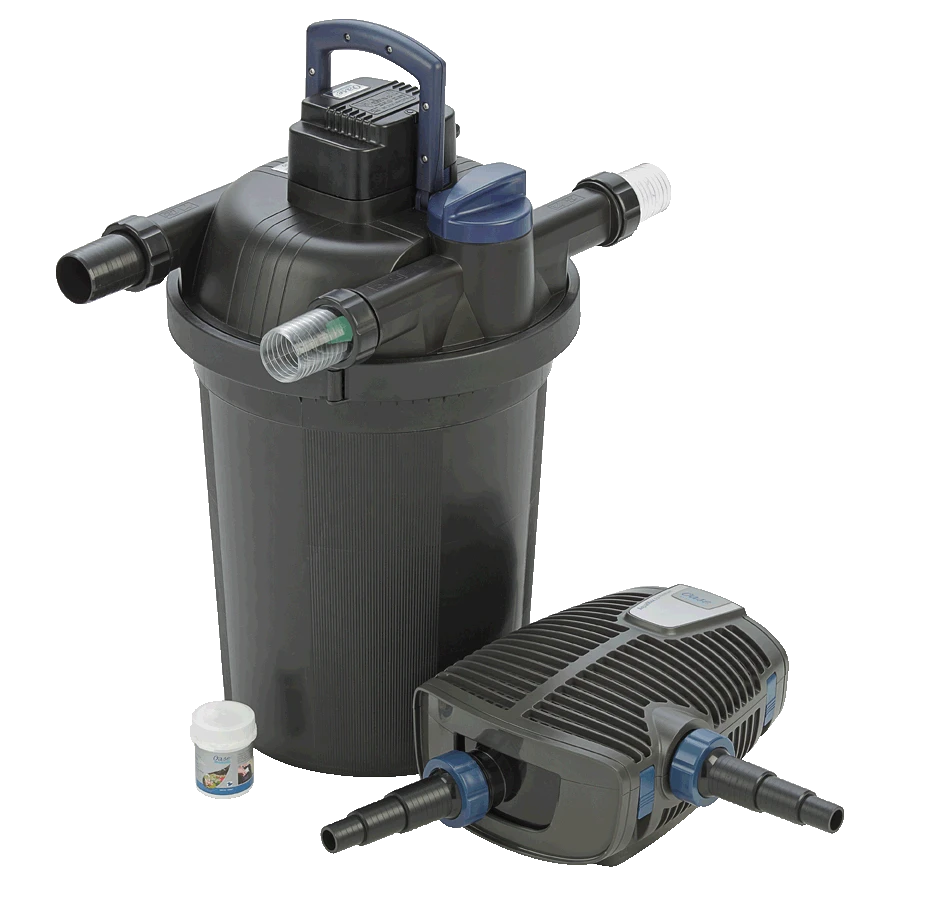 Das anschlussfertige Filter-Komplett-Set Oase FiltoClear Set 16000 enthĂ€lt optimal aufeinder abgestimmte Komponenten fĂŒr die grĂŒndliche und zuverlĂ€ssige Reinigung Ihres Teichwassers. Es besteht aus dem Druckfilter Filtoclear 16000 mit integriertem 24 Watt UVC-VorklĂ€rgerĂ€t, der energiesparsamen Filterpumpe Aquamax Eco Premium 10000 und dem Filterstarter Biokick CWS. Profitieren Sie von der perfekten Zusammenstellung und vom attraktiven Preisvorteil gegenĂŒber dem Einzelkauf.