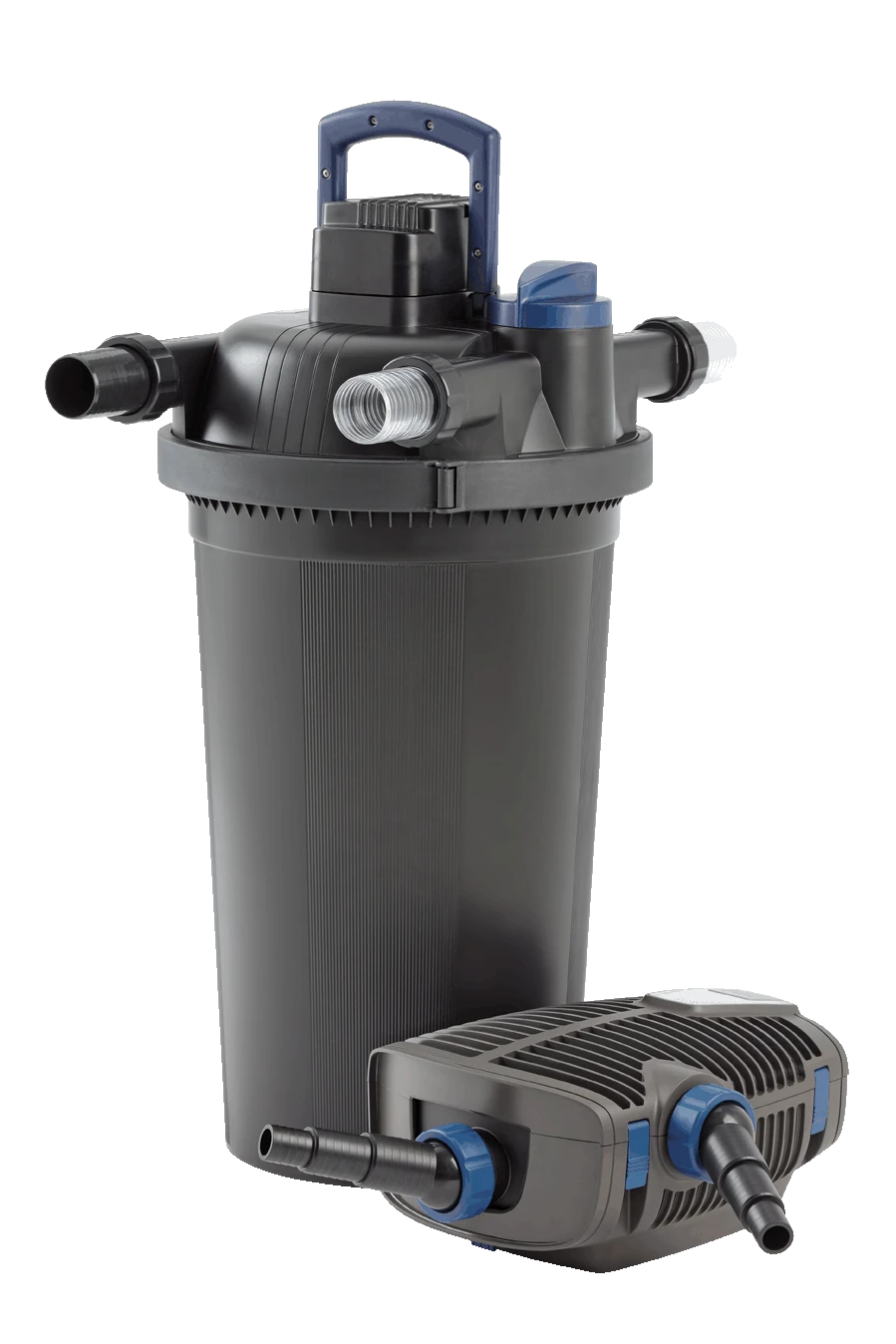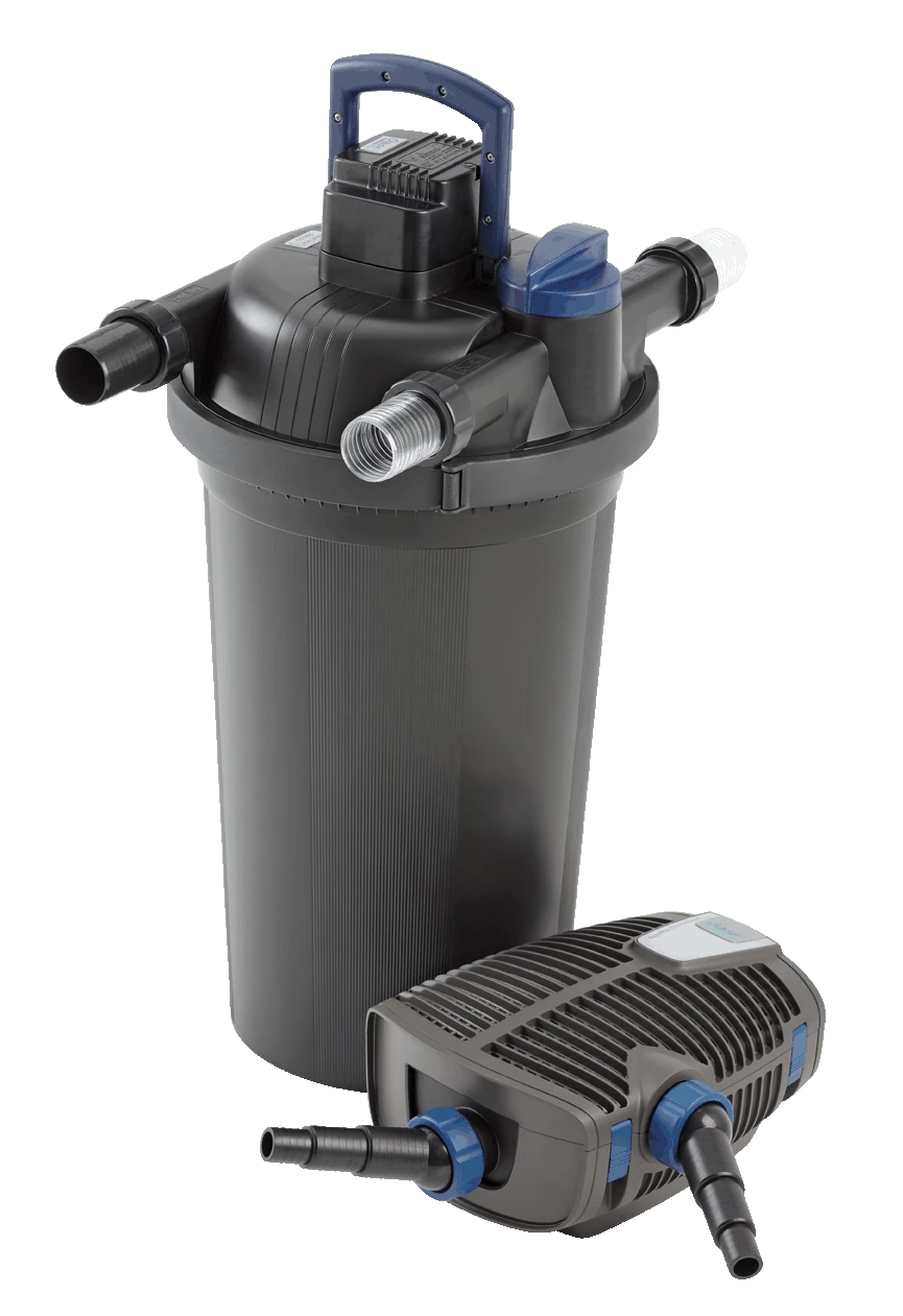 Das anschlussfertige Filter-Komplett-Set Oase FiltoClear Set 20000 enthĂ€lt optimal aufeinander abgestimmte Komponenten fĂŒr die grĂŒndliche und zuverlĂ€ssige Reinigung Ihres Teichwassers. Es besteht aus dem Druckfilter FiltoClear 20000 mit integriertem 36 Watt UVC-VorklĂ€rgerĂ€t, der energiesparsamen Filterpumpe AquaMax Eco Premium 12000 und dem Filterstarter Biokick CWS. Profitieren Sie von der perfekten Zusammenstellung und vom attraktiven Preisvorteil gegenĂŒber dem Einzelkauf.