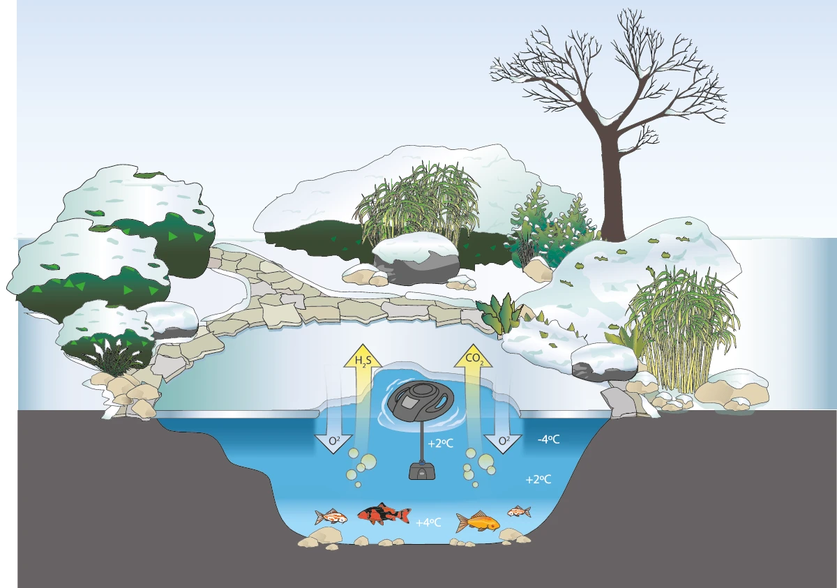 Der extrem energieeffiziente Eisfreihalter Oase IceFree 4 Seasons hält bis ca. -20°C einen Kreis von ca. 20 cm eisfrei und sorgt dadurch für die sichere Überwinterung aller Teichbewohner. Die extrem energieeffiziente Pumpe fördert ohne zusätzliches Heizelemente geringste Menge wärmeren Wassers an die Teichoberfläche und hält so die Stelle um den weißen Schwimmkörper zuverlässig frei. Dadurch kann auch bei eisigen Temperaturen der lebenswichtige Austausch von Sauerstoff und schädlichen Faulgasen sichergestellt werden.