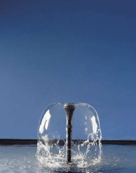 Der stufenlos regulierbare Oase Fontänenaufsatz Lava 36 – 10 K aus hochwertigem Kunststoff mit 1″-Gewinde zaubert ein attraktives Wasserspiel in Ihren Gartenteich. Das Aussehen dieses Wasserspiels lässt sich am ehesten mit einer durchsichtigen, runden Wasserglocke beschreiben. Es ist besonders geeignet für windgeschützte Bereiche.