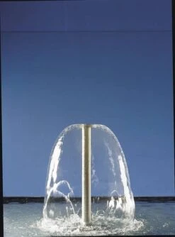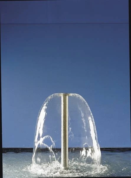 Der Edelstahlfontänenaufsatz erzeugt eine transparente und geräuscharme Wasserglocke, deren Durchmesser reguliert werden kann.
