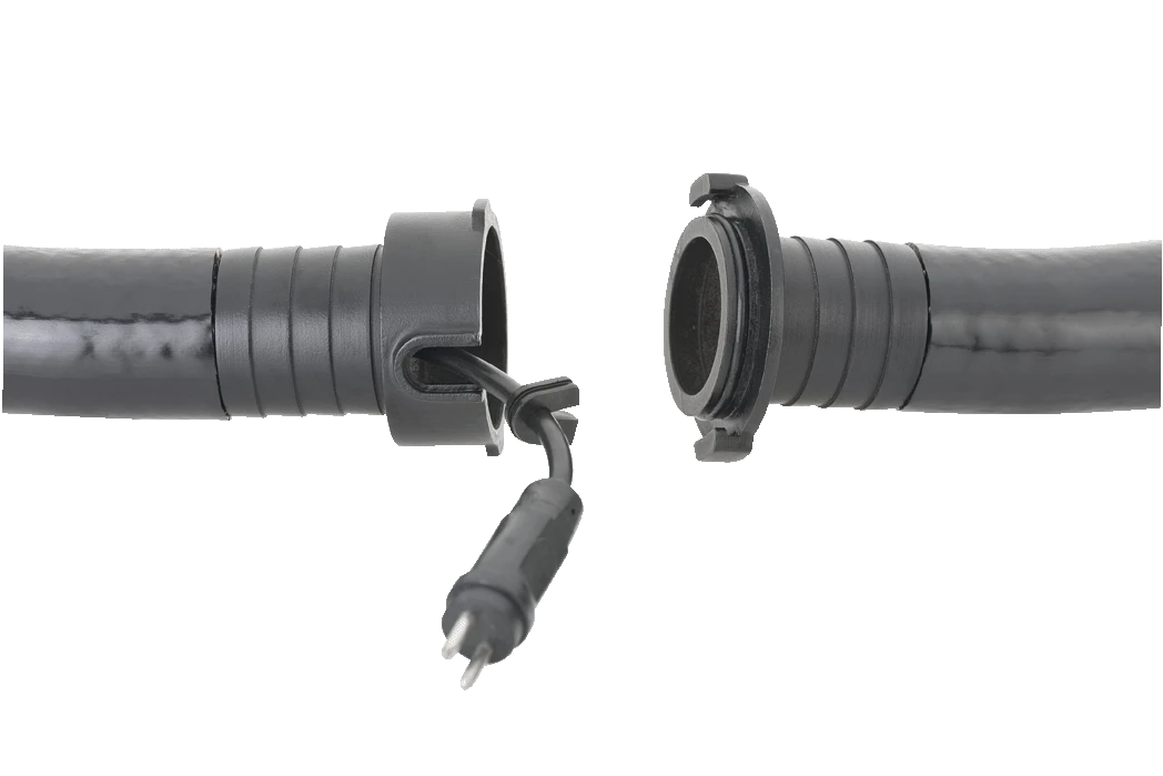 Der innovative Schlauchverbinder mit Netzkabelaustritt macht die Installation der Oase LunaLed 6 s zu einem Kinderspiel. Der Schlauch wird unterhalb des Quellsteins durchtrennt, der Schlauchverbinder dazwischen gesetzt. So kann die Anschlussleitung ganz einfach durch den Verbinder herausgefĂŒhrt werden. Ein mĂŒhsames FĂ€deln durch den gesamten Schlauch ist nicht erforderlich.
