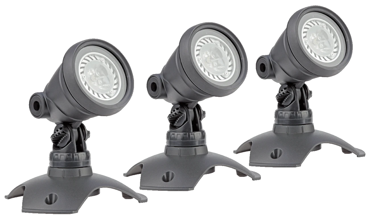 Die 3 LED Unterwasserscheinwerfer des Komplett-Sets Oase LunAqua 3 LED Set 3 besitzen mit einer LichtstĂ€rke von 220 Lumen eine auĂergewöhnliche Leuchtkraft. Sie sorgen daher fĂŒr eine besonders helle Ausleuchtung in Ihrem Garten und Ihrem Teich. Bei einer Leistungsaufnahme von nur 3 Watt pro Scheinwerfer besitzen sie dennoch einen extrem niedrigen Stromverbrauch.