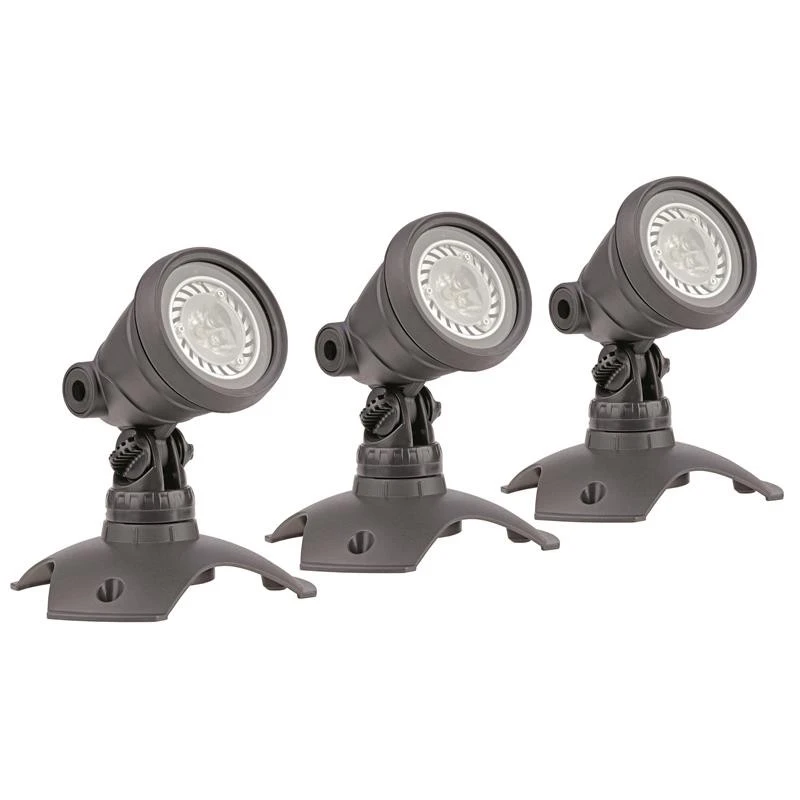 - Im Lieferumfang enthalten: 1 bzw. 3 Scheinwerfer, Trafo 12V, Gummischlauchleitung, 1 bzw. 3 Erdspieße