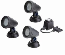 Mit den 3 energieeffizienten LED-Scheinwerfern Oase LunAqua Classic LED Set 3 setzen Sie Pflanzen und Dekorationen mit angenehm warmweiĂen Lichtakzenten gekonnt in Szene. Dabei ermöglicht der verstellbare Kopf eine flexible Ausrichtung des Strahlwinkels (Halbstreuwinkel 20 Grad).