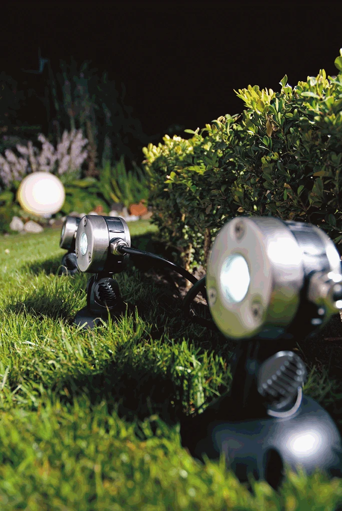 Die 3 energieeffizienten LED-Leuchten des Leuchtensets Oase LunAqua Mini LED können aufgrund ihrer geringen Abmessungen leicht in Ihre Garten- und Teichlandschaft integriert werden. Sie sind in Reihe geschaltet und fĂŒr den Einsatz ĂŒber und unter Wasser bestens geeignet. Ideales Einsatzgebiet ist die effektvolle Beleuchtung von Brunnen, Teichen, Teichlandschaften sowie GĂ€rten und Terrassen. Der verstellbare Kopf der Oase LunAqua Mini LED ermöglicht dabei die flexible Ausrichtung des breiten Strahlwinkels (Halbstreuwinkel 30 Grad). Die Leuchten verfĂŒgen ĂŒber dekorative und hochwertige EdelstahldetailsÂ
