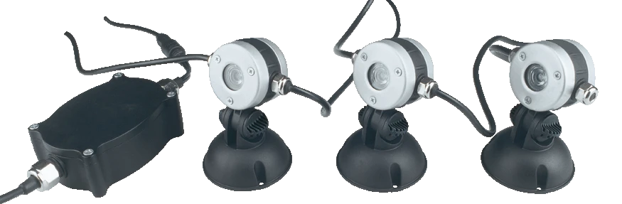 Das Set besteht aus drei Power LED-Leuchten in Premium-QualitÀt und einem 12 V-Sicherheitstrafo.