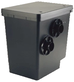 Das 83 x 60 x 82 cm groĂe Pumpenkammer-Modul besteht aus hochwertigem Duroplast.