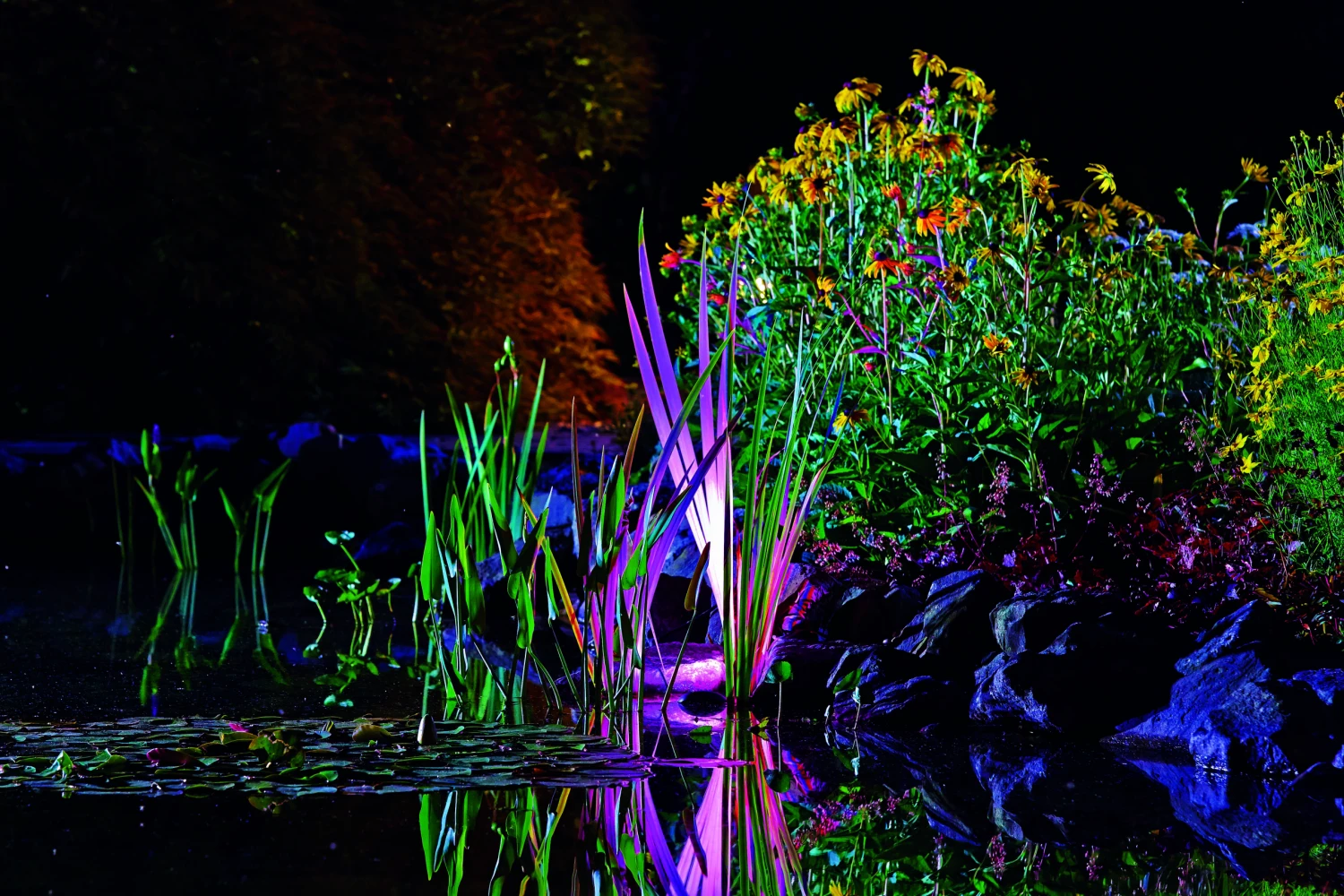 Der Oase ProfiLux Garden LED RGB ist flexibel einsetzbar, sowohl über als auch unter Wasser, als Fontänenbeleuchtung, im Boden eingebaut oder an der Wand montiert.