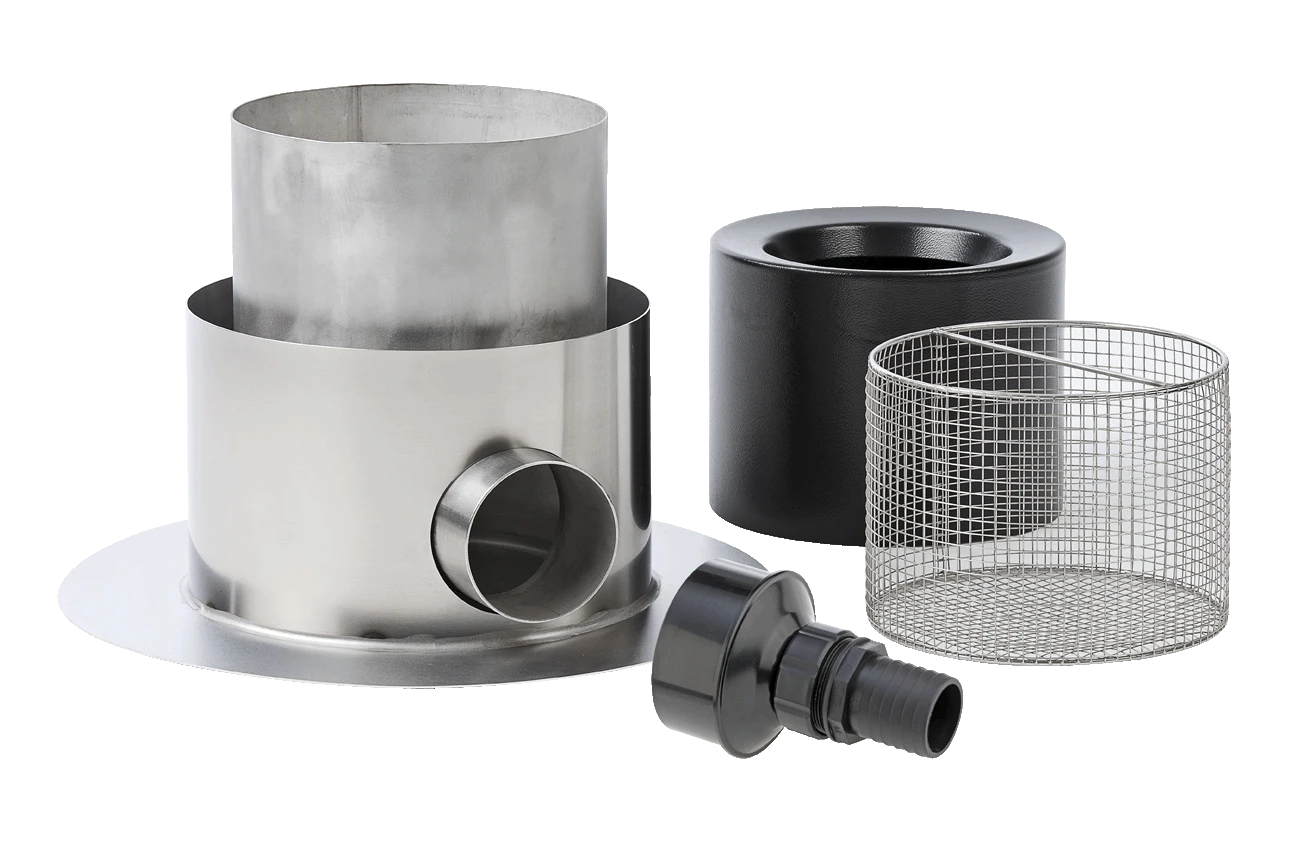 Der Profiskim Premium verfĂŒgt ĂŒber einen standsicheren EdelstahlfuĂ, der einen einfachen Einbau ermöglicht. Der Schmutzfangkorb aus Edelstahl mit einer Maschenweite von 8 mm ist komfortabel zu reinigen. Optional erhĂ€ltlich ist ein Korb mit einer Maschenweite von 2 mm (siehe Zubehör).