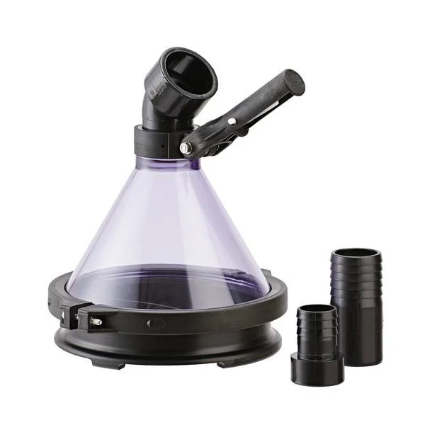 - Mulmsauger mit transparenter Polycarbonatglocke und drehbarem 39/50mm Anschluss. Ideal zur schonenden Reinigung von Kiesflächen.