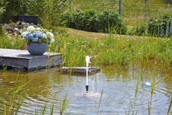 Der Fontänenaufsatz aus hochwertigem Kunststoff kann wasserstandsunabhängig eingesetzt werden. Er eignet sich besonders gut für Flachwasserzonen und kleinere Gartenteiche.