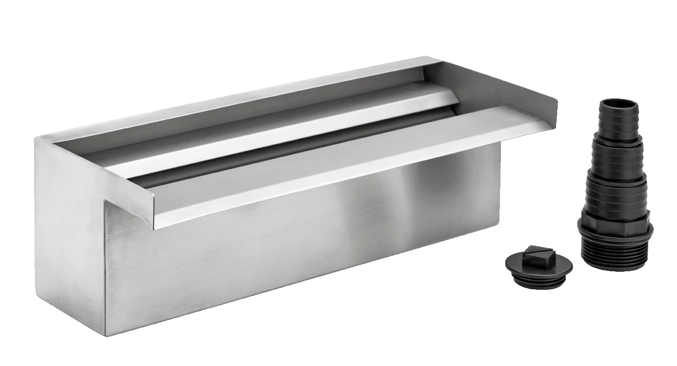 Edler und anmutiger Wasserfall in 300 mm Breite. Individuelle WasserfĂ€lle lassen sich jetzt ganz einfach gestalten, denn die robuste und hochwertige Verarbeitung aus Edelstahl ermöglicht sowohl den Einbau in eine Mauer als auch die Verschraubung an eine Wand. Jetzt mit verlĂ€ngerter Austrittslippe fĂŒr einen noch einfacheren Einbau. Im Lieferumfang enthalten sind Gewindeöffnungen, SchlauchtĂŒllen und Stopfen. FĂŒr einen klaren und ebenmĂ€Ăigen Wasserfall sorgt die passende Pumpe: Bei einer Wasserfallhöhe von 0,8 m – 1,0 m = AquaMax Eco 3500 – 4000 / 0,4 m – 0,6 m = AquaMax Eco 2500 / 0,2 m = AquaMax Eco 2500. Vertrauen Sie auf OASE QualitĂ€t, denn Sie erhalten eine Garantie von 2 Jahren.Â