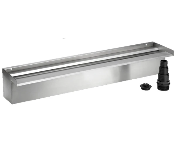 Schaffen Sie einen tollen Blickfang in Ihrem Garten. Der kompakte und robuste Wasserfall Oase Waterfall 60 erzeugt  bis zu einer Höhe von einem Meter ein ebenes und gleichmĂ€Ăiges Wasserbild. Er kann einfach und individuell an Mauern und WĂ€nden installiert werden. Sie haben die Wahl zwischen einem festen Einbau oder dem Anschrauben. FĂŒr einen komfortablen Einbau ist der 60 cm breite Auslass des Wasserfalls bewusst verlĂ€ngert. Der Waterfall 60 ist aus erstklassigem Edelstahl 1.4401 (V4A) hergestellt. Dieses besonders hochwertige Material ist rostfrei und eignet sich auch fĂŒr salzhaltige Luft bzw. salziges Wasser. Die Verwendung ist daher auch in KĂŒstenregionen problemlos möglich. Im Lieferumfang ist je eine Gewindeöffnung an der RĂŒck- und Unterseite, eine StufenschlauchtĂŒlle (19, 25, 32 und 38 mm) sowie ein Stopfen enthalten. In Zusammenarbeit mit der Firma Oase gewĂ€hren wir Ihnen 2 Jahre Garantie.Oase Waterfall 60Waterfall 60
