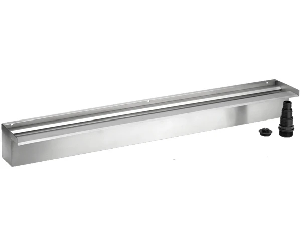 Schaffen Sie einen tollen Blickfang in Ihrem Garten. Der kompakte und robuste Wasserfall Oase Waterfall 90 erzeugt  bis zu einer Höhe von einem Meter ein ebenes und gleichmĂ€Ăiges Wasserbild. Er kann einfach und individuell an Mauern und WĂ€nden installiert werden. Sie haben die Wahl zwischen einem festen Einbau oder dem Anschrauben. FĂŒr einen komfortablen Einbau ist der 90 cm breite Auslass des Wasserfalls bewusst verlĂ€ngert. Der Waterfall 90 ist aus erstklassigem Edelstahl 1.4401 (V4A) hergestellt. Dieses besonders hochwertige Material ist rostfrei und eignet sich auch fĂŒr salzhaltige Luft bzw. salziges Wasser. Die Verwendung ist daher auch in KĂŒstenregionen problemlos möglich. Im Lieferumfang ist je eine Gewindeöffnung an der RĂŒck- und Unterseite, eine StufenschlauchtĂŒlle (19, 25, 32 und 38 mm) sowie ein Stopfen enthalten. In Zusammenarbeit mit der Firma Oase gewĂ€hren wir Ihnen 2 Jahre Garantie.Oase Waterfall 90Waterfall 90
